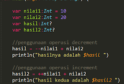 bernilai (?) dan bertipe data integer, lalu saya mengatur nilai pada variable